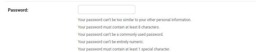 "NAME": "your_app.password_validators.SpecialCharacterPasswordValidator",
