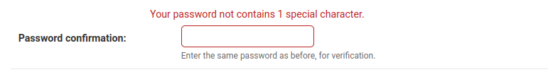 "Your password not contains {} special character.",