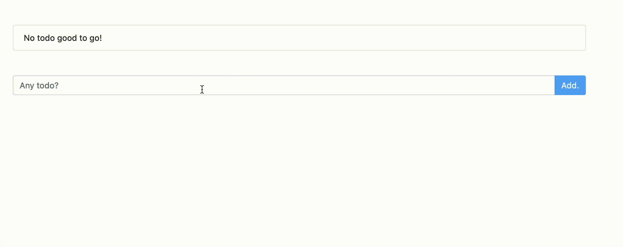 <body> <div class="container mx-auto mt-5"> <div class="row"> <div class="col-12"> <div id="app"> <ul v-if="todos.length > 0" class="list-group"> <li :style="lineType(todo.is_done)" v-for="todo in todos" :key="todo.id" class="list-group-item"> <span>[[todo.title]]</span> <button @click="completeTodo(todo.id)" class="btn btn-info float-right">[[todo.is_done ? "Uncomplete" : "Complete"]].</button> </li> </ul> <ul v-else class="list-group"> <li class="list-group-item"> No todo good to go! </li> </ul> <div class="input-group mb-3 mt-5"> <input v-model="newTodo" type="text" class="form-control" placeholder="Any todo?" aria-describedby="button-addon2"> <div class="input-group-append"> <button :disabled="!newTodo.length > 0" @click="createNewTodo()" class="btn btn-primary" type="button">Add.</button> </div> </div> </div> </div> </div> </div> </body>